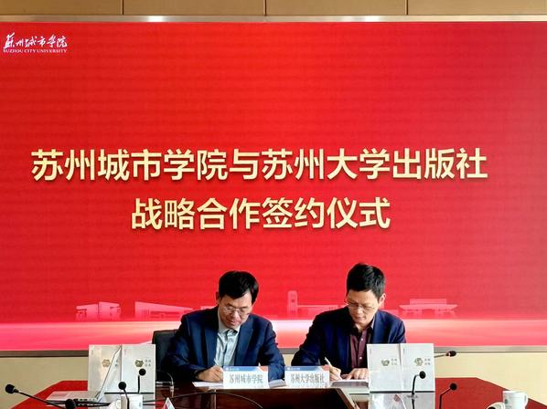 苏州大学出版社总编辑陈兴昌在致辞中表示,苏州城市学院扎根苏州沃土,在地域文化研究与应用型人才培养方面成果丰硕,双方合作基础坚实、前景广阔。出版社将充分发挥资源优势,与学校携手推进学术成果转化、教材开发与文化传播,共同为区域教育文化事业发展贡献力量。