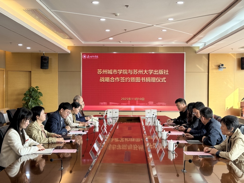 金秋送爽,书韵流芳。11月10日,我校与苏州大学出版社战略合作暨图书捐赠仪式在学校综合楼三楼大会议室隆重举行。此次活动标志着双方在学术出版、人才培养、文化传承等领域的深度合作正式启航。