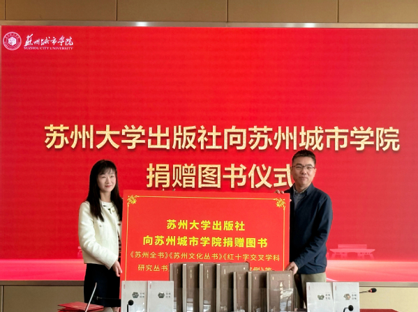 随后举行的图书捐赠环节中,苏州大学出版社向苏州城市学院捐赠了《苏州全书》《苏州文化丛书》《红十字交叉学科研究丛书》等一批精品图书。这些涵盖地方文化、交叉学科等领域的优质文献,将有效丰富馆藏资源,为师生教学科研提供有力支持。