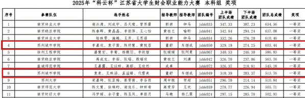 11月8日,由江苏省高等教育学会指导、中国商业会计学会主办、厦门科云信息科技有限公司承办的“科云杯”江苏省大学生财会职业能力大赛省赛圆满落幕。在我院董舒、车继成老师的专业指导下,由会计专业学生组成的“苏城一队”与“苏城二队”表现卓越,双双荣获省赛一等奖。
