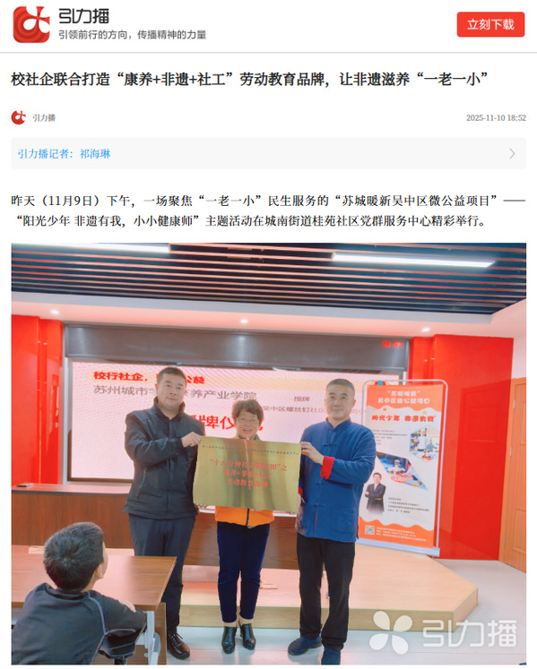 昨天(11月9日)下午,一场聚焦“一老一小”民生服务的“苏城暖新吴中区微公益项目”——“阳光少年 非遗有我,小小健康师”主题活动在城南街道桂苑社区党群服务中心精彩举行。