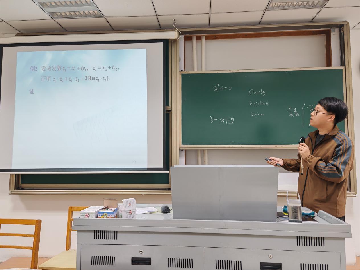 本次示范课是学部提升课堂教学质量的系列活动之一。陈赛杰老师以《复变函数》课程为例,首先系统阐述了该学科的脉络体系与学习价值,随后以“复数及其运算”为教学案例,通过精心的教学设计、清晰的讲授和积极的师生互动,生动展示了对基础概念的深入讲解和课堂节奏的娴熟把控。