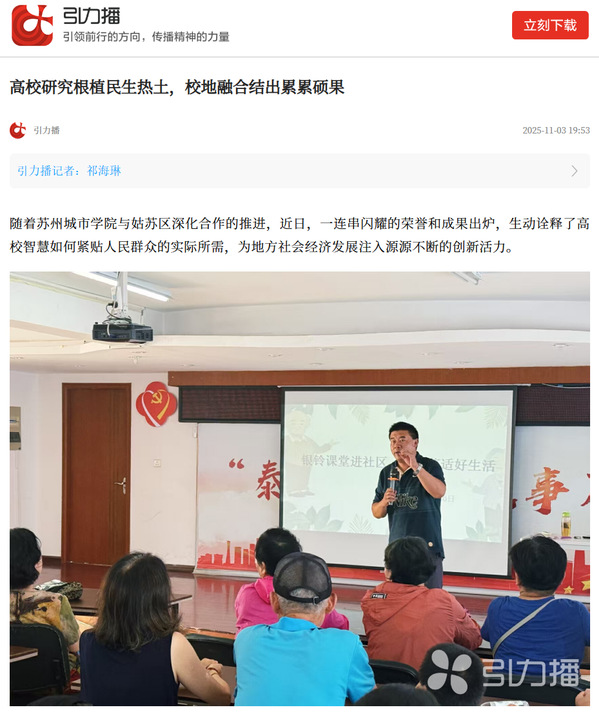 这一系列成就的背后,是苏州城市学院与姑苏区之间“双向奔赴”的深度融合模式。姑苏区广阔而复杂的社会肌理,成为了高校“接地气”的开放式实验室;而高校则发挥其人才和科研优势,将前沿理论带入基层,为破解治理难题提供了“智慧引擎”。这种合作还上升到国家视野,由张宇和沧浪街道合作主持的课题《老龄文明理念下社区老年教育高质量发展路径研究》作为案例被写入姑苏区人大上报全国人大的报告,并获得了批示肯定。这不仅是高校服务社会的最佳体现,更为姑苏区如何利用“外脑”提升治理能力、增进民生福祉,提供了一个可复制、可推广的鲜活样本,为“姑苏画卷”增添了浓墨重彩的智慧一笔。