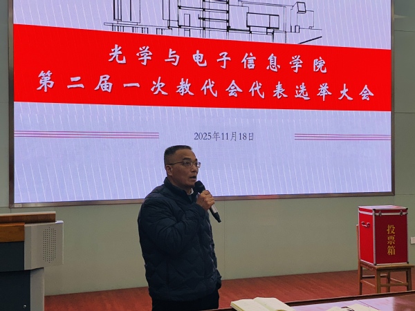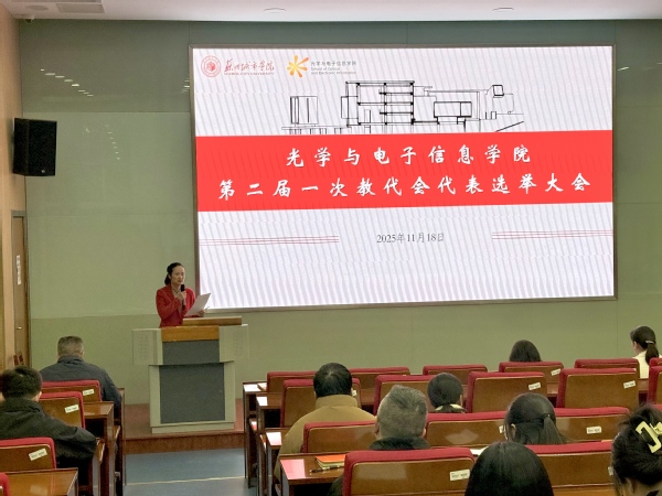 为积极响应学校关于召开苏州城市学院二届一次教职工代表大会的部署,光学与电子信息学院11月18日下午在3-101召开全体教师大会,选举苏州城市学院第二届教代会代表。本次大会由学院党委书记宋丹主持,全院教师参加。