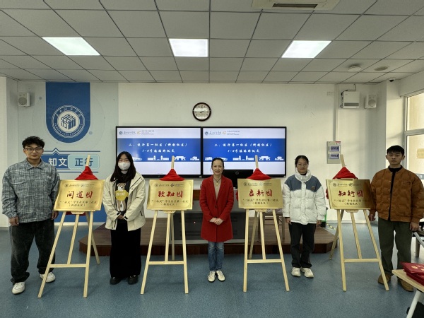 首先,张潇婷介绍了第一社区的整体建设情况,并重点对社区1-4号楼楼宇的命名进行解读。本次楼宇命名紧扣“科创”特色、光电学院学科属性和中华优秀传统文化,通过富有底蕴的名称,增强社区的归属感与文化凝聚力,引导学生深入理解命名背后所承载的期望与内涵。随后,宋丹和四位副楼长共同为各楼层揭牌,标志着第一社区建设稳步进入深化内涵、提质增效的发展阶段。