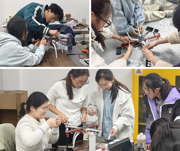 本次赛事设置四轴无人机组装调试赛、AI机器狗组装赛、舵机时钟组装赛、伞翼无人机组装赛四大项目,将专业知识应用、动手能力培养与学风建设要求紧密结合。在无人机组装环节,面对零件匹配、芯片焊接等技术难点,同学们在专业教师指导下互帮互助、钻研技巧、攻克难题,熟练掌握了机架搭建、电机接线、桨叶校准等关键操作,展现出扎实的专业功底、严谨的治学态度与不懈的钻研精神,正是学院优良学风的生动写照。