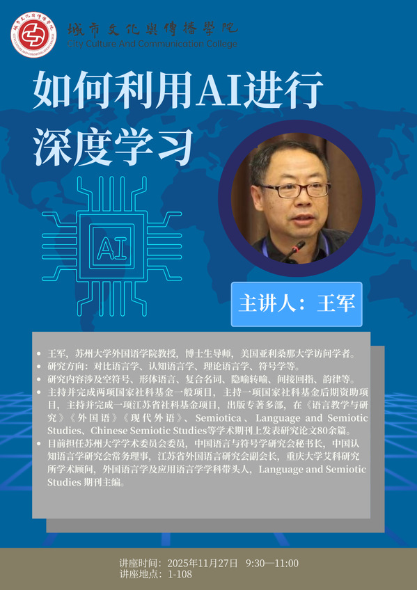 城市文化与传播学院《如何利用AI进行深度学习》讲座海报