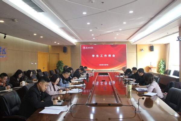 11月27日上午,我校在综合楼三楼大会议室召开学生工作例会。校党委常委、副校长吴昌政,团委(美育中心)、招生就业处、党委学生工作部(学生工作处)等职能部门负责人,各二级学院分管学生工作副书记、青年干事、团学办主任以及党委学生工作部(学生工作处)相关老师参加会议。会议由吴昌政主持。