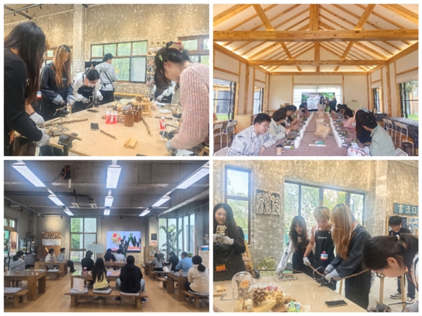 团队活动环节,参训学生分组体验了自然手作、木育工坊和花事工坊三个特色项目。在自然手作中,学员们探索植物脉络,设计并制作石膏浮雕艺术品;在木育工坊里,大家将天然树枝精心打磨成独特的永恒铅笔;在花事工坊中,同学们协作完成浆草盆栽的种植与布景。三项实践紧扣主题,有效锻炼了艺术审美、动手能力和协作精神。
