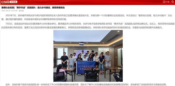 (中华网)苏州城市学院光学与电子信息学院“携手共进”暑期社会实践团队助力乡村建设,展现青春担当