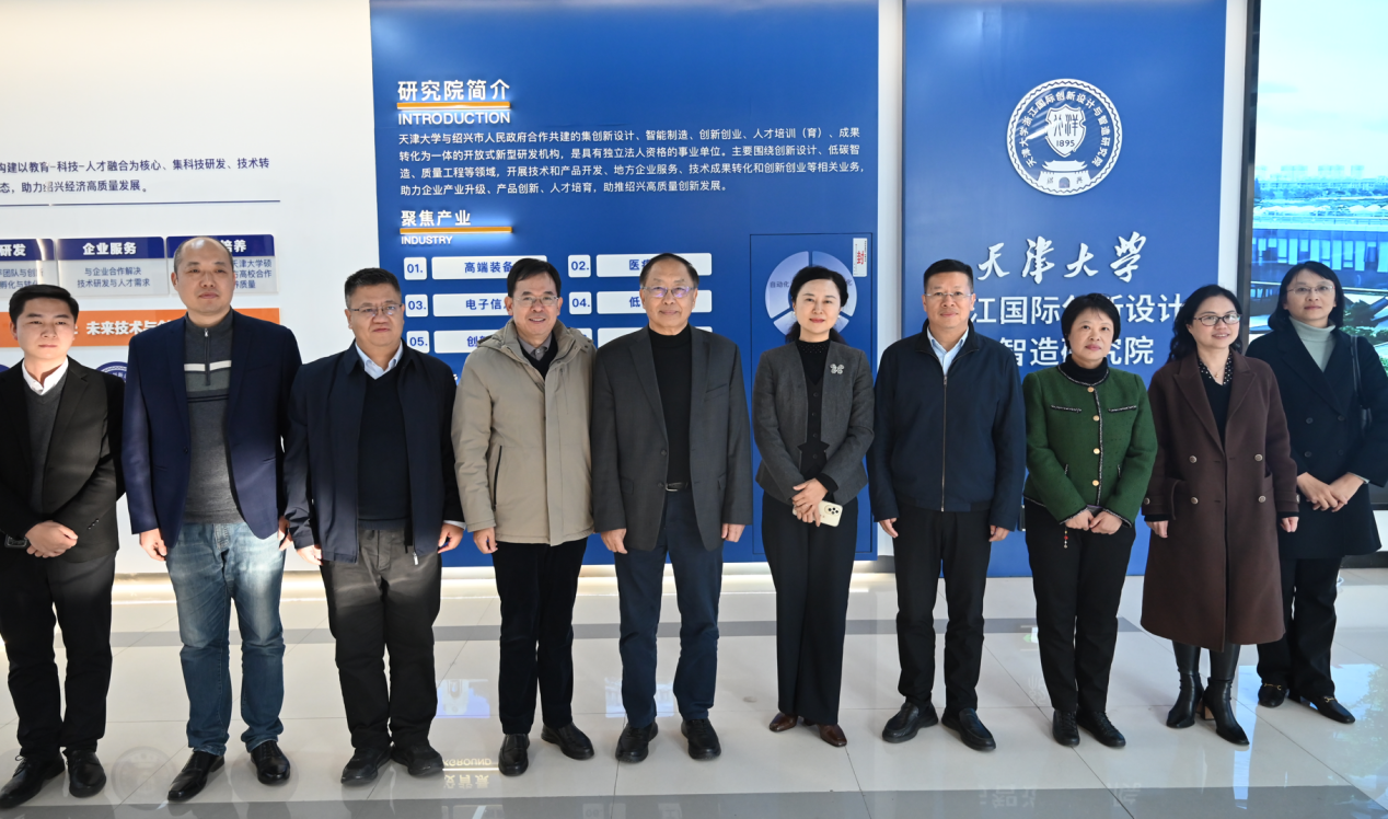 调研团队首先参观了研究院核心展厅。作为天津大学与绍兴市政府深度合作的标志性创新平台,该展厅系统呈现了研究院在智能装备研发、数字孪生技术应用、绿色制造工艺革新等领域的重大突破,其中包括“AI驱动的产品创新设计系统”“面向医疗设备的智能制造解决方案”等典型工程案例。展厅内的成果展示直观印证了产教融合在技术创新与人才培育中的关键地位和作用。