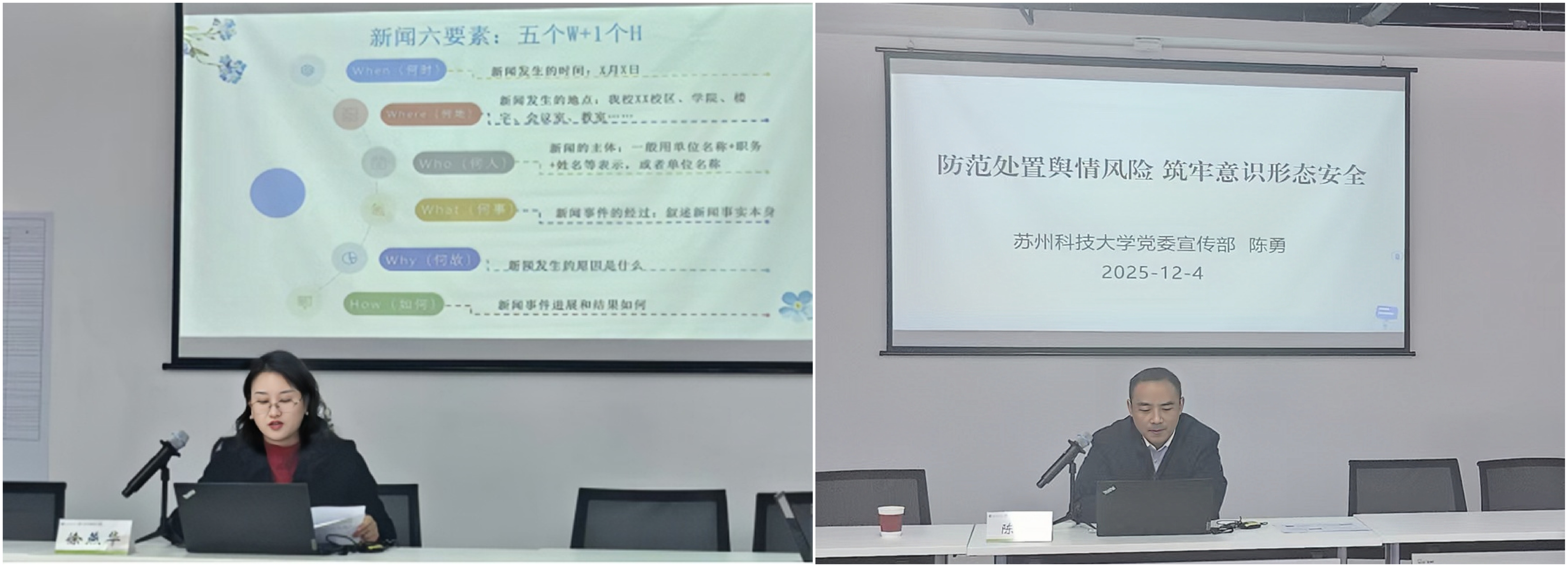 为进一步提升学院新闻宣传工作水平,强化师生新闻策划能力与政治敏锐性,12月4日上午,艺术与创意设计学院特邀苏州科技大学党委宣传部副部长陈勇、新闻宣传科科长徐燕华,为学院师生带来案例生动的专题讲座。艺术与创意设计学院党委书记刘文、党委副书记丁良超、师生通讯员代表参加讲座。讲座由刘文主持。