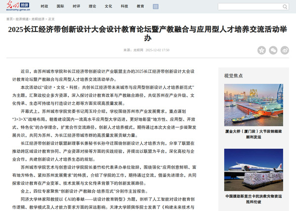 近日,由苏州城市学院和长江经济带创新设计产业联盟主办的2025长江经济带创新设计大会设计教育论坛暨产教融合与应用型人才培养交流活动举办。
