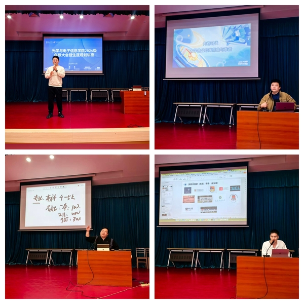 为进一步引导学生树立学业发展目标、提升生涯规划能力,同时强化日常行为规范教育,12月9日,光学与电子信息学院在学术报告厅召开2024级年级大会暨生涯规划指导讲座。会议特邀研途考研程大伟、张鹏、钟仕浩作为主讲嘉宾,2024级全体同学参与会议,会议由李星宇主持。