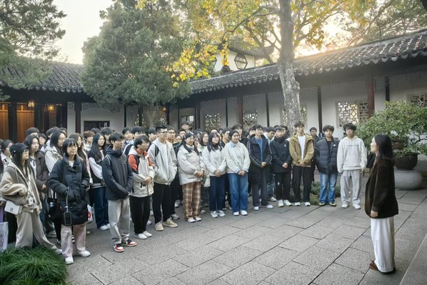 2025 年11月21日下午,苏州城市学院马克思主义学院组织25电子和25 工科书院教学班学生走进苏州沧浪亭,开展“融城思政·园林中的思政课”现场教学活动,在漫步古典园林行走的思政课中探寻社会主义核心价值观的文化基因。