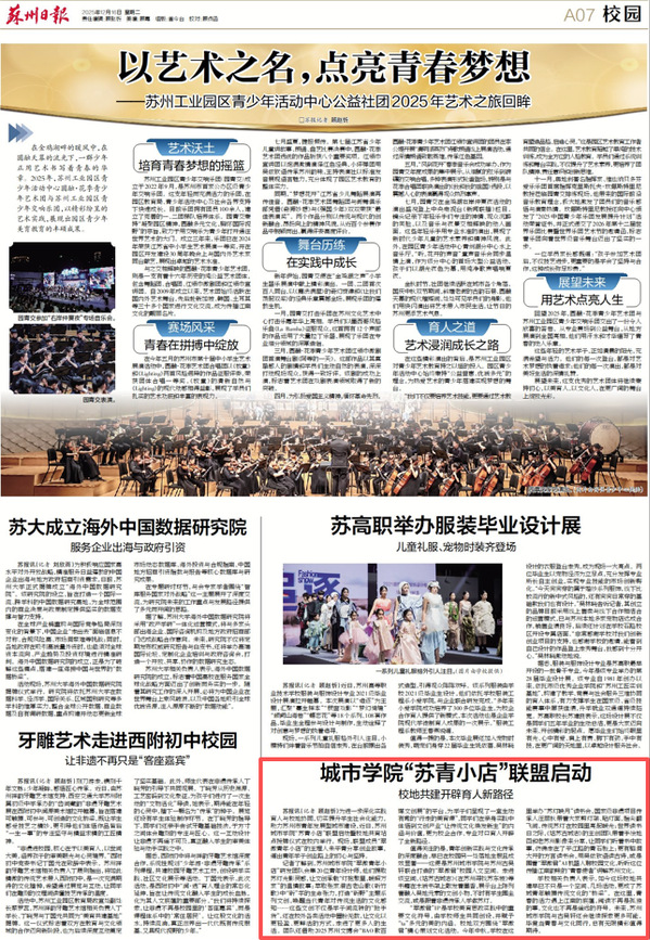 为进一步深化实践育人与校地协同,切实提升学生社会化能力,助力苏州市青年发展型城市建设,近日,苏州城市学院“苏青小店”联盟启动暨校地共育站点授牌仪式在校内举行。现场,联盟成员“翠微青年小店”的主理人朱平青分享创业故事,道出青年学子创业路上的初心与坚持。
