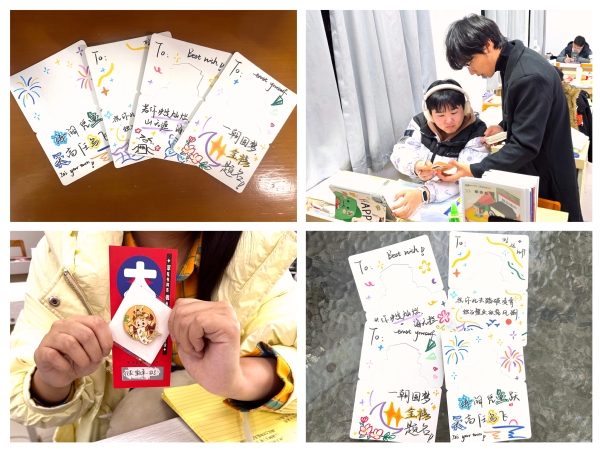 创意贺卡传递校园温情。城市治理与公共事务学院学生会巧妙设计“考研祝福贺卡”活动,将“翠微君”校园形象融入贺卡设计,推出了祝福卡、趣味刮刮乐等多元形式的祝福套组。这一张张精心制作的贺卡,不仅承载着同学间的真挚情谊,更传递出学校对考研学子的暖心关怀。许多收到贺卡的同学表示,这份惊喜为紧张的备考生活注入暖意,让他们真切感受到“不是一个人在战斗”。