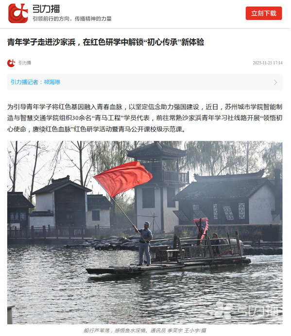 为引导青年学子将红色基因融入青春血脉,以坚定信念助力强国建设,近日,苏州城市学院智能制造与智慧交通学院组织30余名“青马工程”学员代表,前往常熟沙家浜青年学习社线路开展“领悟初心使命,赓续红色血脉”红色研学活动暨青马公开课校级示范课。