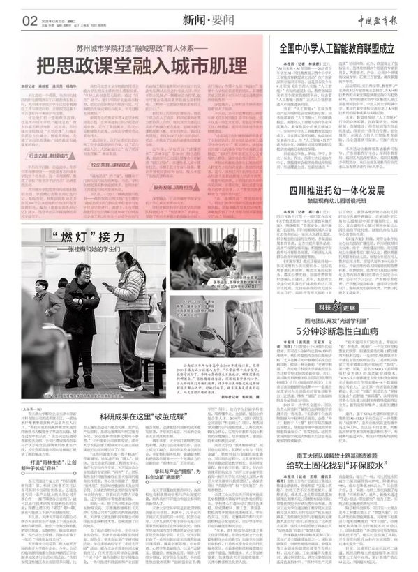12月23日,《中国教育报》报道我校“融城思政”育人工作——《苏州城市学院打造“融城思政”育人体系——把思政课堂融入城市肌理》。文章全文如下: