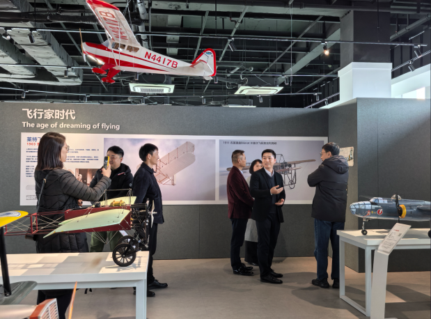 栗民一行首先参观了航空文化与航空模型科普馆。卢晓晖详细介绍了每一款展品,并对低空联合实验室的实践成果做了简要介绍。