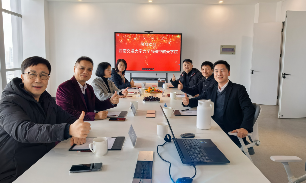 随后,双方在会议室举行座谈。刘文对栗民一行的到来表示热烈欢迎,并简要介绍了学院的基本情况、学科建设特色、人才培养成果以及低空经济领域的探索与实践。他表示,交大办学历史悠久,在轨道交通、航空航天、工业设计等领域拥有深厚的学科积淀和雄厚的师资力量,期待双方以此次调研为开端,在创新设计等领域开展深度合作,优势互补。