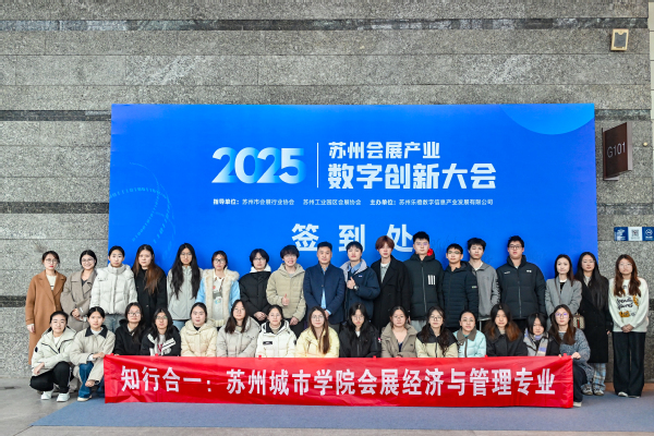 2025年12月23日,“2025年苏州会展产业数字创新大会”在苏州博览中心隆重举行。大会以“数字赋能·创新驱动”为主题,聚焦数字化、智能化技术与会展产业的深度融合与未来发展路径,吸引了来自全国各地的行业专家、企业代表以及高校师生齐聚一堂。苏州城市学院组织相关专业师生代表参会,数字经济与管理学院院长王文华、会展经济与管理专业教师和24级全体学生出席大会并参与相关活动。
