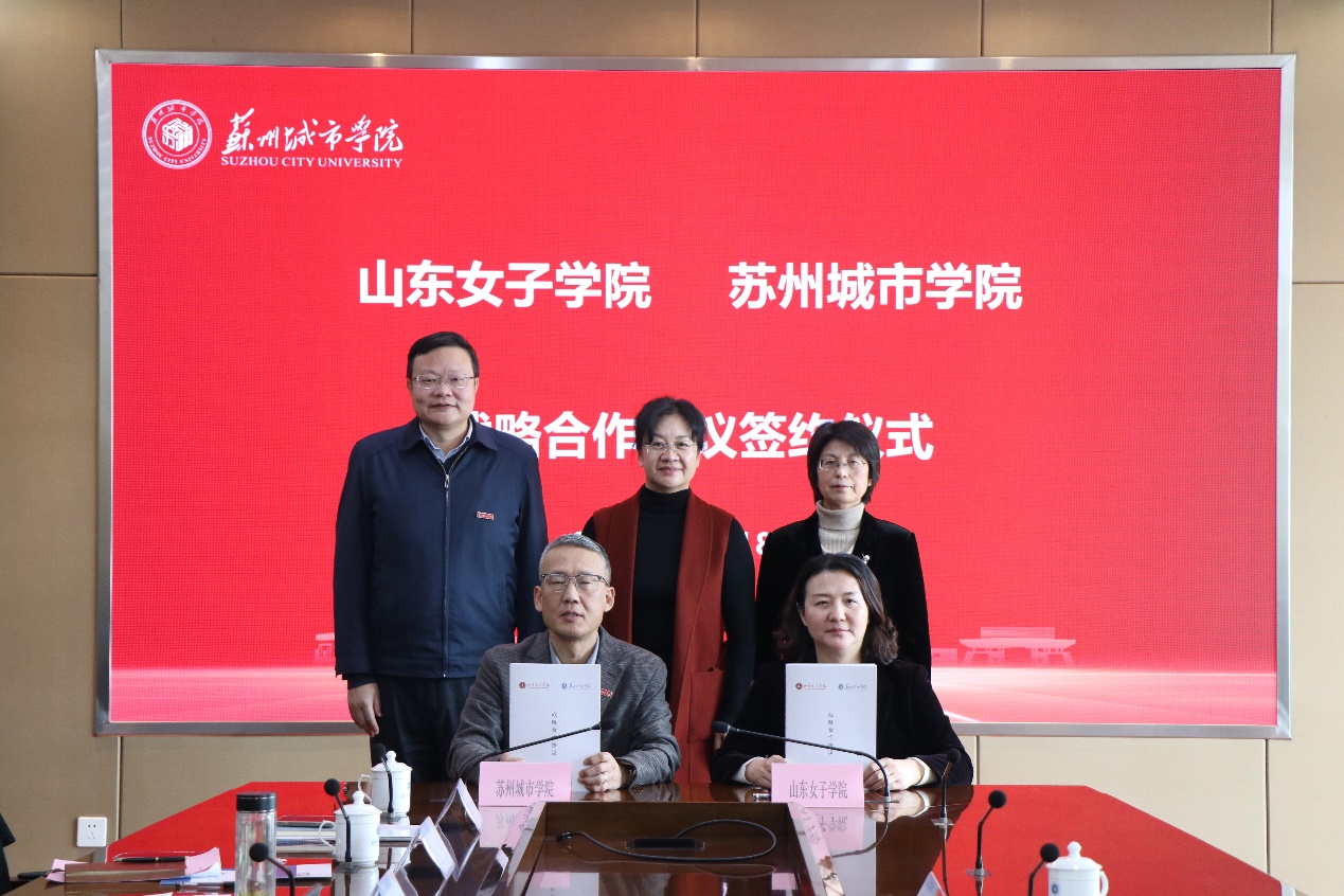 山东女子学院机关党委书记、党委院长办公室法律事务办公室主任许冰,学科建设与发展规划处(高教研究室)处长(主任)祝苏东,继续教育学院院长陈珂,以及苏州市教育局副局长、苏州城市学院发展规划处副处长(挂职)杨俊达和我校有关职能部门、二级学院负责人参加签约仪式。