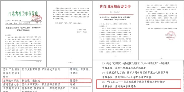 近日,我校共青团工作再添佳绩,城市文化与传播学院团委选送的《新弦歌・最江南》课程成功入选2025年“信仰公开课”省级精品课,计算科学与人工智能学院团委选送的《智汇旺山——生态文旅融合赋能乡村振兴标杆行动》项目获评2025年度苏州共青团“青力聚核”创新创优项目二等奖,彰显了我校共青团育人工作的扎实成效与创新活力。