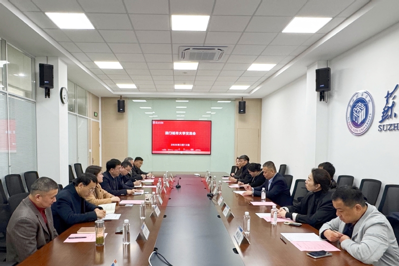 3月12日下午,澳门城市大学副校长叶桂平一行来访我校,开展交流座谈及学术讲座活动。我校党委常委、副校长高雷,港澳台办公室及相关二级学院负责人出席会议,苏州市委组织部人才工作处副处长吴迪到会交流。