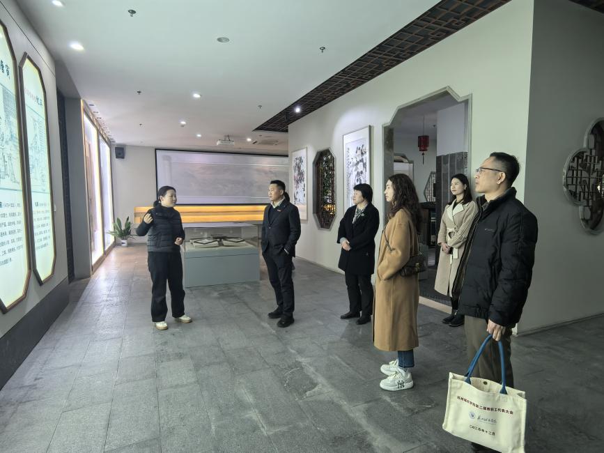 李勇一行首先参观了苏州市职业大学颇具规模的吴文化园。通过实地走访这一集传统与现代、传承与创新为一体的大型文化综合体,调研组深刻感受到了吴地文化“融和、创新、典雅、精致”的独特魅力,并对管理学院依托地方文化资源开展素质教育、推动文化育人的扎实成果有了直观认识。