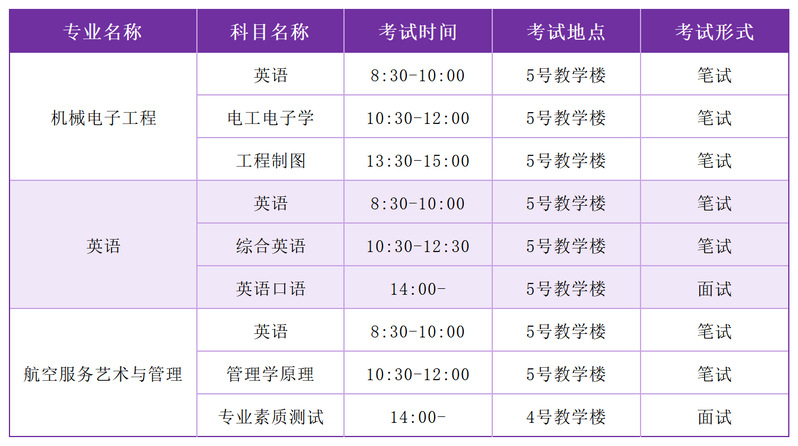 (2)航空服务艺术与管理专业《专业素质测试》考试科目