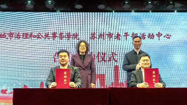 3月20日,“走进春天”苏州市老干部文体月开幕式在市老干部活动中心隆重举行。活动现场,城市治理与公共事务学院学院党委书记解燕,副院长、康养产业学院负责人张宇受邀出席,并与苏州市老干部活动中心(苏州市老干部党校)正式签署合作协议。此举标志着双方的合作迈向了体系化、深度融合的新阶段,是以高校智慧精准服务地方“银发经济”高质量发展、高质量融入苏州城市发展战略的又一重要实践。