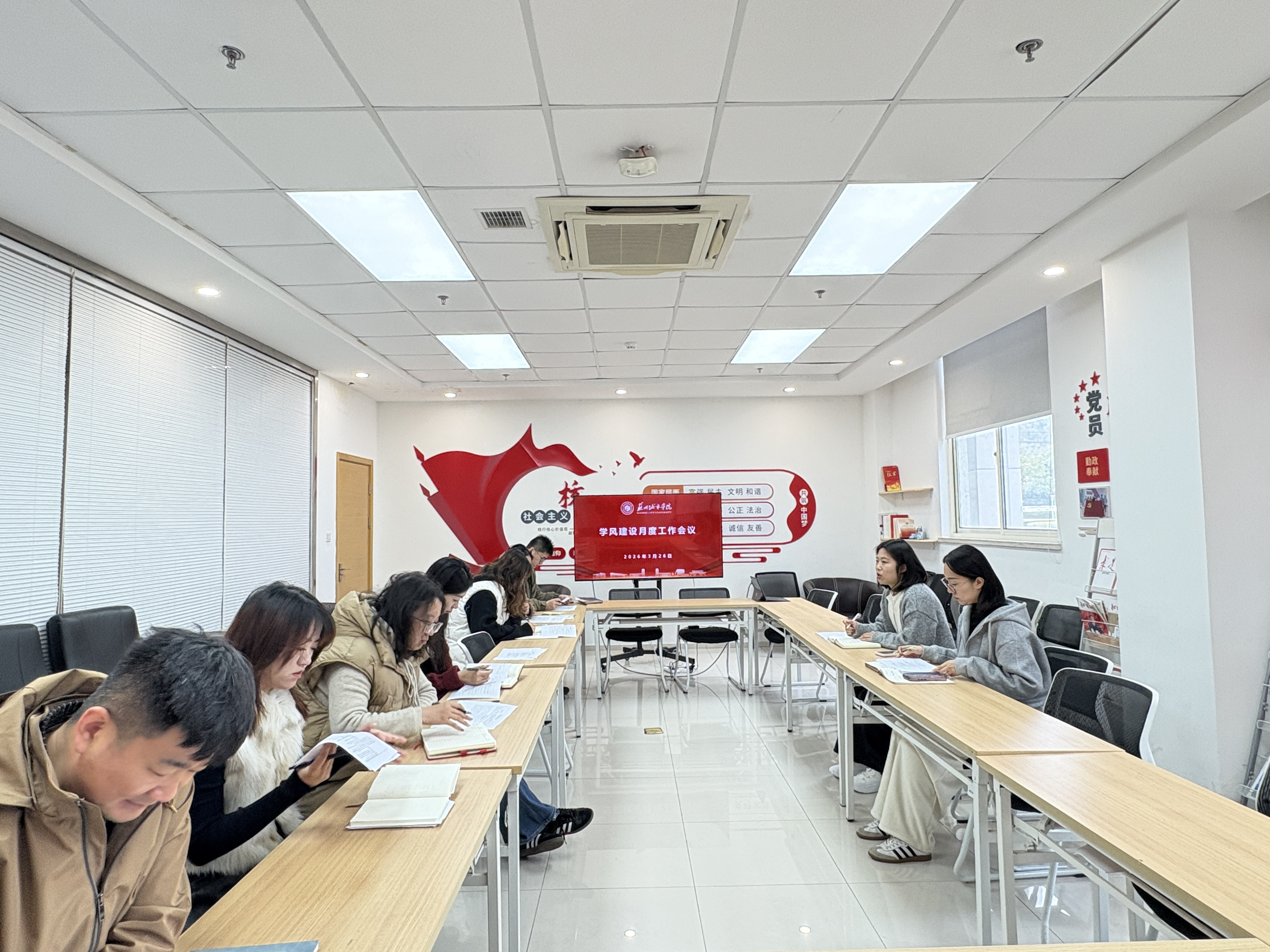 为统筹推进新学期学风建设工作,明确重点任务方向,3月26日上午9点,苏州城市学院在综合楼108会议室召开2025-2026学年第二学期学风建设工作会议。党委学生工作部(学生工作处)张晓晗、詹萍出席会议,各学院学风工作专项辅导员参加会议。