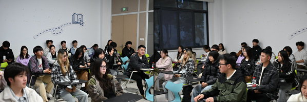 讲解过程中,现场同学们认真聆听、仔细记录,沉浸在浓厚的学习氛围中。在随后的互动问答环节,同学们踊跃发言提问,围绕AI工具在小店运营中的具体应用、创业过程中的技术难题、参赛作品的优化方向等问题与罗聪老师深入交流。罗聪老师耐心细致地逐一解答,结合自身行业经验给出针对性建议,不仅为同学们破解了创业实践中的技术困惑,更拓宽了大家的创业思路,同时也让同学们对“苏青小店”的运营与大赛筹备有了更清晰的规划。
