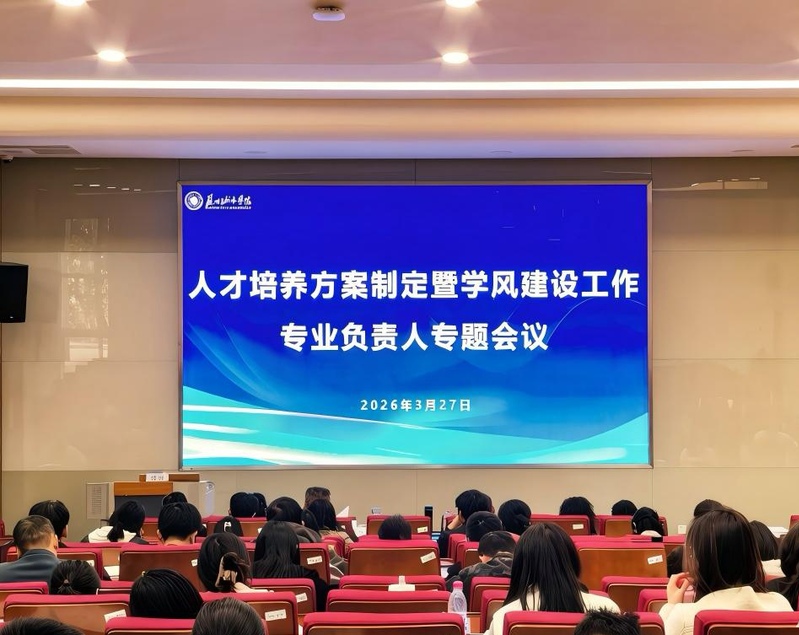 为深入贯彻新时代高等教育改革要求,落实本科教学工作合格评估迎评要求,高质量推进本科人才培养方案修订暨学风建设工作,3月27日下午,学校在3-101教室召开2026版本科专业人才培养方案修订指导暨学风建设专题会议。副校长高雷、教务处、学生处相关负责人出席会议,各学院教学院长、各专业负责人、骨干教师、教务秘书及教务处相关科室人员等80余人参加会议。会议由教务处处长许宜申主持。
