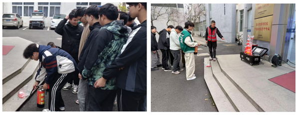 疏散演练结束后,党委保卫处老师与消防教官在现场进行了总结点评,并结合近年来高校实验室火灾典型案例,深入剖析实验室火灾特殊性,重点讲解危化品规范存放、实验用电安全等常见安全隐患,以及初期火灾精准处置关键要点。随后,消防教官现场示范灭火器“提、拔、握、瞄、压”标准操作流程,并组织参演师生分组开展仿真灭火实操训练,确保全员熟练掌握灭火器及常用消防器材的规范使用技能。