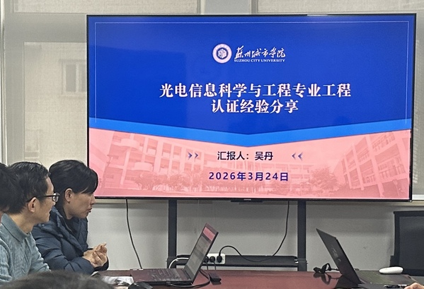 为进一步推进工程教育专业认证工作,提升本科教学质量,3月24日下午,光电学院组织召开专题会议。会议邀请吴丹教授分享工程认证申报经验,并传达教育部教育质量评估中心开展的2026年本科教学工作合格评估参评高校培训精神。学院院长雎胜、院长助理丁云、各专业负责人及相关教师参加会议。