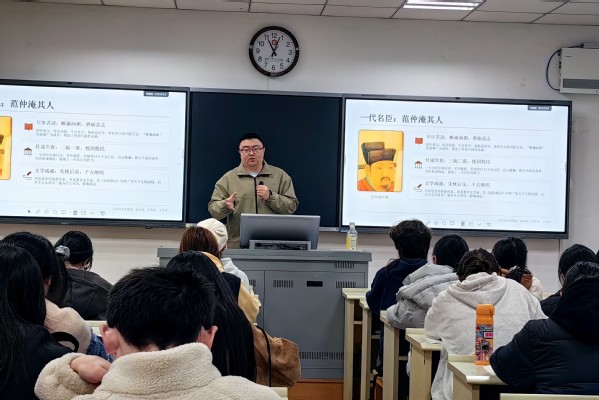 苏州城市学院马克思主义学院教师王瀚尧从历史维度进行了拓展。他提醒同学们,在领悟范仲淹“宋学”精神时,务必结合其主导的庆历新政这一重要时代背景。庆历新政是范仲淹改革精神的集中体现,影响深远。将宋学的产生与范仲淹的政治理想相联系,能更深刻地理解其“先忧后乐”家国情怀的现实根基与历史意义。