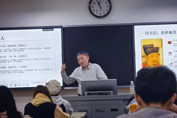 第三,全面认识范仲淹“文武双全”的杰出素养。范仲淹不仅是文坛巨擘,其军事才能同样卓越,展现了非凡的胆识与谋略。这种“出将为相”的全面素养,源于其深厚的学养、坚韧的意志和“先忧后乐”的崇高境界。田芝健老师以此勉励学子努力成为德智体美劳全面发展的时代新人,既要潜心问道、博览群书,又要强健体魄、磨练意志,在实践中经风雨、见世面、长才干,成长为才堪大用、能担重任的栋梁之材。