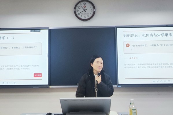 活动伊始,宋辰熙老师简要介绍了范仲淹作为北宋著名政治家、文学家、教育家的生平事迹,并阐释了宋学精神“革新政令”与“创通经义”两大核心内涵,指出范仲淹正是宋学的开创者,其“先忧后乐”的思想与“明体达用”的教育理念影响深远。
