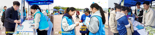活动伊始,志愿者们便早早到岗,有序引导参与者签到、领取物资。他们认真核对报名信息,将装有服装、荧光棒、互动卡的“蓝色包裹”一一递到大家手中。现场还设置了宣传倡导与互动打卡摊位,志愿者们耐心指引参与者集章打卡、拍照互动,为开跑前的时光增添了轻松与温暖。