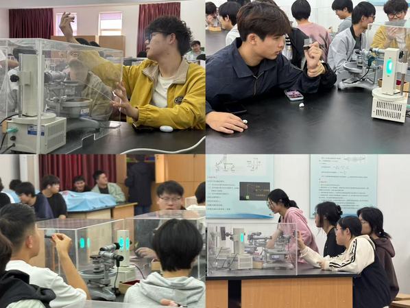 活动伊始,由实验室杨武老师作“物理实验常用仪器读数与常用光源”专题讲解,系统介绍基础测量仪器的规范操作与各类光源的光学特性,为学生奠定必要的理论根基。随后,学生分组开展仪器认知与初步操作实践,在分光计调节、光学现象观察等动手环节中深化理解,实现“学用相长”。