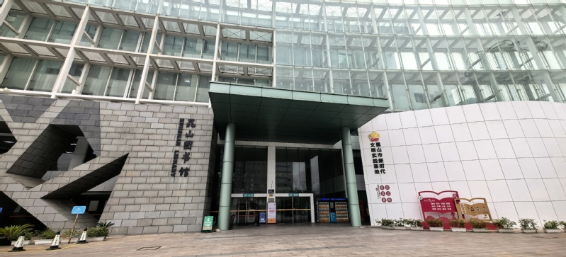 昆山市图书馆流通部副主任文琴对我校一行的到来表示热烈欢迎,并详细介绍了图书馆在文化推广、阅读服务、非遗体验等方面的资源优势与特色活动。她表示,昆山市图书馆始终致力于服务地方文化建设与公众文化需求,非常期待与苏州城市学院展开合作,共同助力校友文化建设。