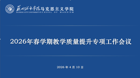 根据学校本科教学工作合格评估的相关要求,4月10日下午,苏州城市学院马克思主义学院召开“2026年春学期教学质量提升专项工作会议”。会议重点传达学校关于评估工作的最新精神与反馈意见,专项部署教案等教学材料的整改工作,强调全员参与、协同推进评建工作的重要性。马克思主义学院院长田芝健,党委书记解笑,副院长荀明俐及全体教师参加会议,会议由院长助理张昉主持。