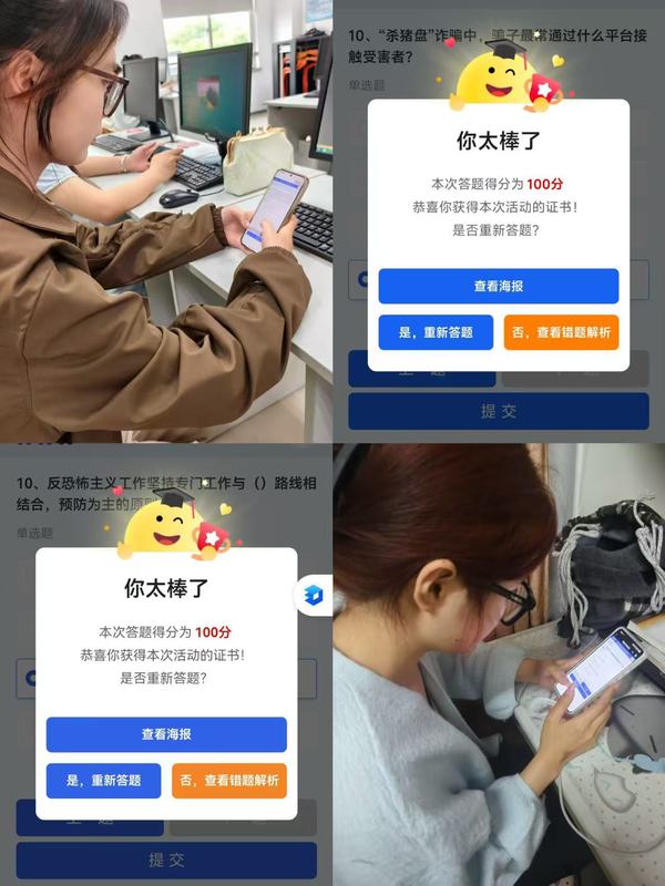 直播学习结束后,学院积极组织各年级学生开展全国大学生国家安全知识答题活动。在辅导员与各班班委的统筹督促下,全体学生踊跃参与、认真作答,形成比学赶超的良好氛围。以赛促学、以学促行,有效巩固了学习成果实现从“被动接受”向“主动学习”转变,让国家安全意识真正转化为思想自觉与行动自觉。