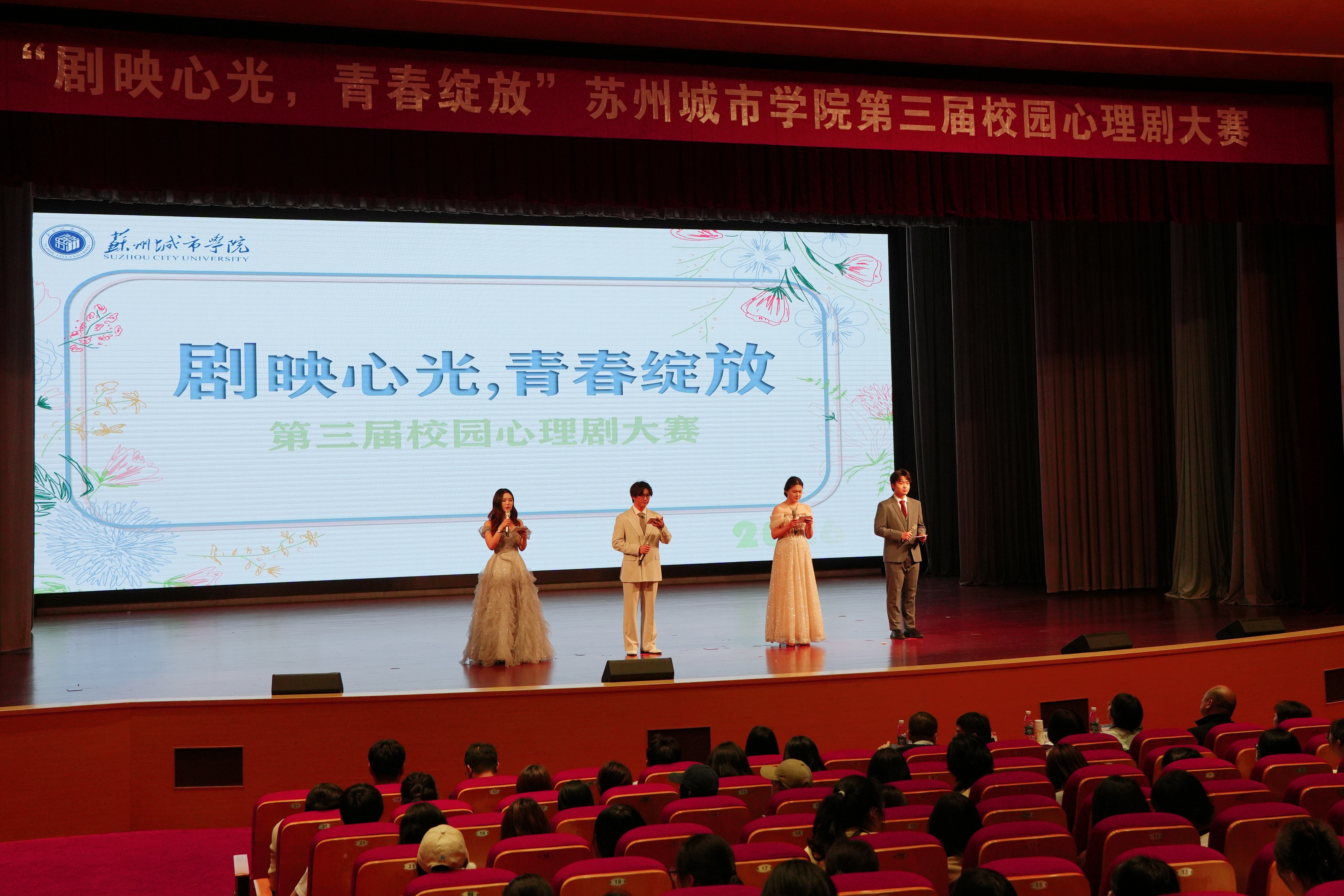 为深入落实“健康第一”教育理念,持续深化“五育润心”育人成效,夯实学生心理健康根基,赋能学生心灵成长,4月15日晚,我校党委学生工作部(学生工作处)心理健康教育中心于综合楼多功能厅举办“‘剧映心光,青春绽放’苏州城市学院第三届校园心理剧大赛”活动。活动特邀苏州大学大学生心理健康教育研究中心前任主任王静、苏州科技大学心理健康教育中心副教授高素华、苏州电视台特约专家花文龙三位老师担任本次活动的专家评委。