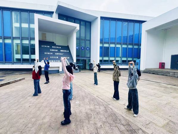 活动尾声,张宇老师还带领同学们共同练习八段锦,在动静相宜的传统养生功法中舒展身心,实现文化浸润与健康实践相统一。