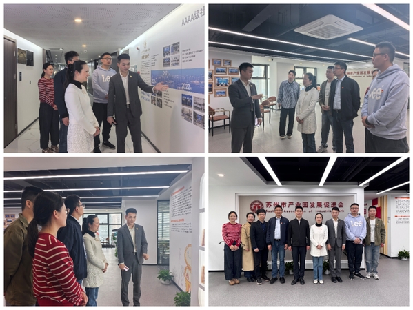 交流会伊始,学院一行在王涛书记带领下,共同参观苏州市产业园发展促进会展厅,全面了解促进会发展历程、产业布局、服务体系及“1030”产业体系建设成果,深入感受苏州产业园集群发展、创新驱动的蓬勃态势,为后续共建合作奠定坚实认知基础。