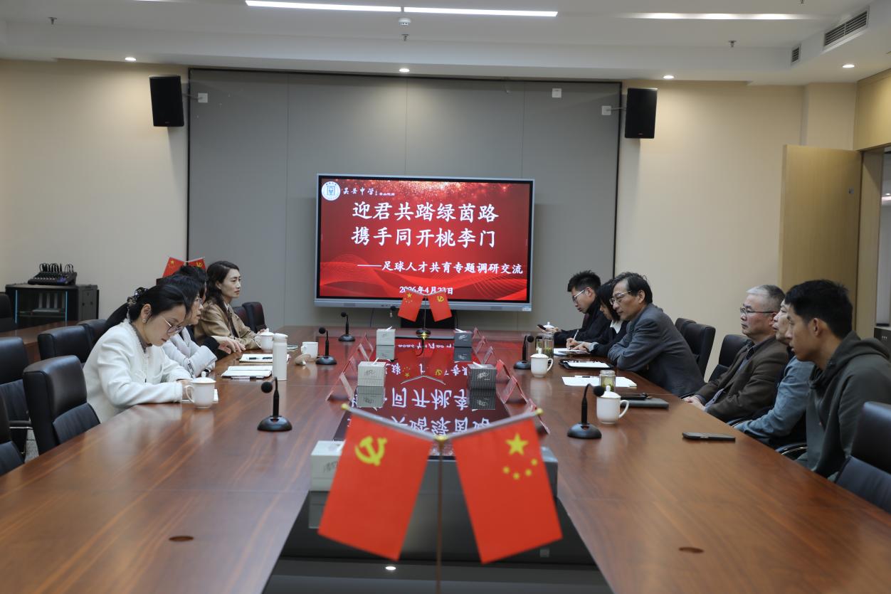 双方围绕足球特长生培养、师资共享、场地共用、学术交流等议题展开讨论,并达成多项合作意向,包括建立常态化教研互访机制、推动课程与场地资源共建共享、完善人才选拔与输送衔接机制等。会后,调研组实地参观了吴县中学天然草皮足球场与体教融合足球项目展示馆。