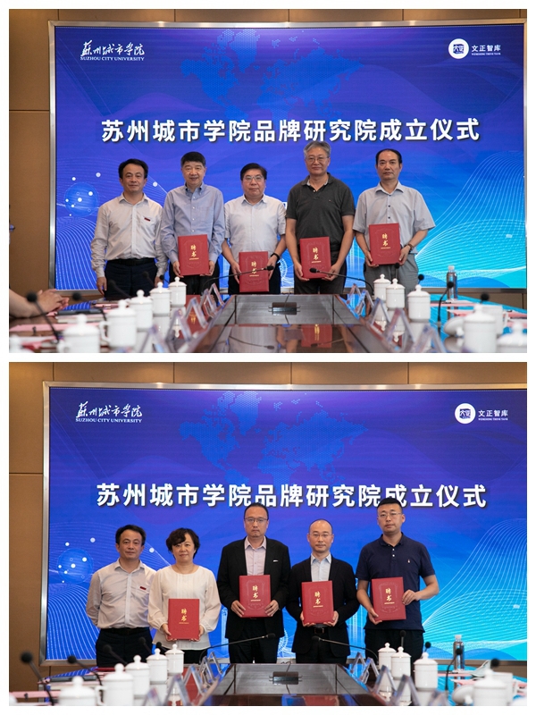 周玉玲宣读学校关于成立品牌研究院决定,工商联领导、工信局领导、吴中区领导、芮国强书记登台为苏州城市学院品牌研究院揭牌。该研究院是集品牌研究、人才培训、品牌论坛、交流与合作等功能于一体的开放式大平台,主要研究方向为追踪、把握国际学术前沿以及国内品牌学界发展动态,适时提出重要研究课题;接收苏州地方政府及品牌企业提出的各类需求,高质量完成苏州政府部门或品牌企业委托的各类课题;组织专家学者撰写并提交相关决策报告;探索品牌价值评价体系,组织编写出版综合性的年度《苏州品牌发展报告》、《苏州品牌案例研究丛书》等。